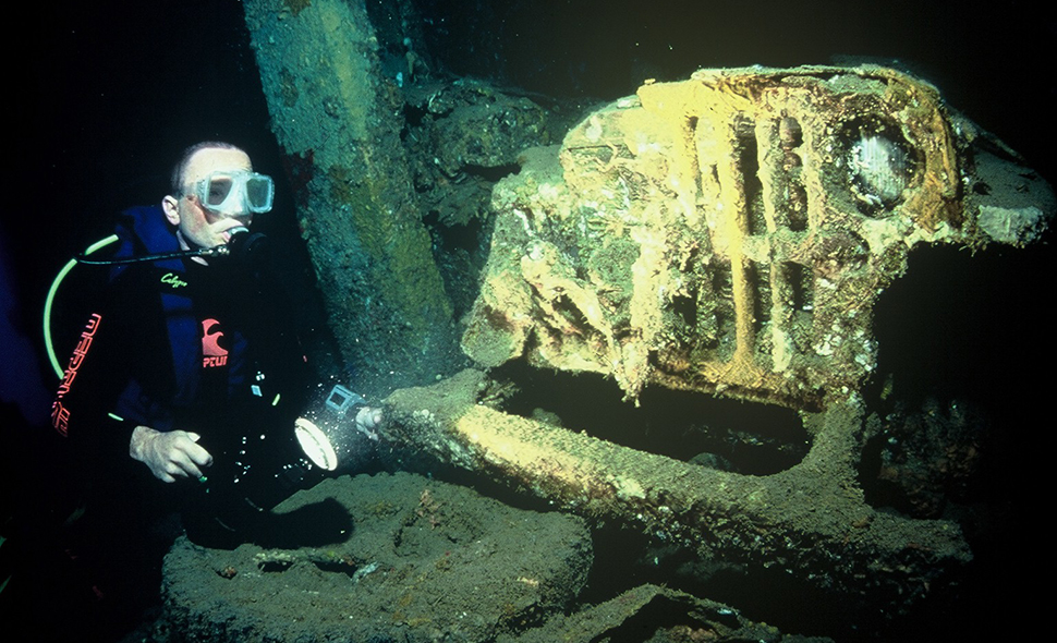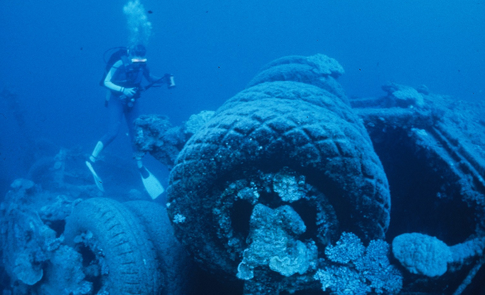付近には沈没船の他、終戦後に米軍撤退が海中投棄した様々軍備品が散見出来ます。これは当時。バヌアツ政府が引き取りを拒否した為で不要になったブルドーザや小型船、発電機などを積んだトラックを海岸から捨てたものが現在まで残り、ダイビングスポットと成りました。
