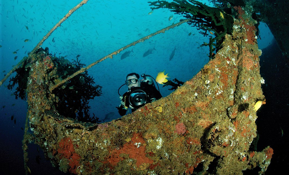 沈没船「クーリッジ号」の内部では当時の豪華客船プレジデント・クーリッジ号の室内やタイプライターや食器、様々な船内残留物を見る事が出来ます。中にはトイレなど海の中にあるのが不思議な物もあります、船の大きさは映画で有名なタイタニックに迫る程でその規模が解るでしょう。