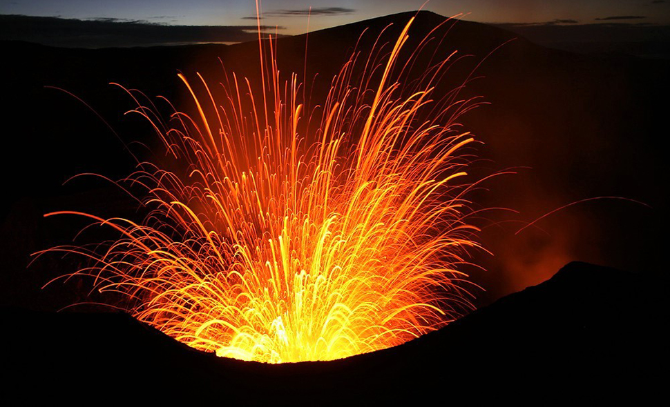 この島にあるヤスール火山は世界で最も火口まで近づける活火山として有名。腹の底に響くような爆発音と共に真っ赤な溶岩を吹き上げる様は恐ろしいくらい。
